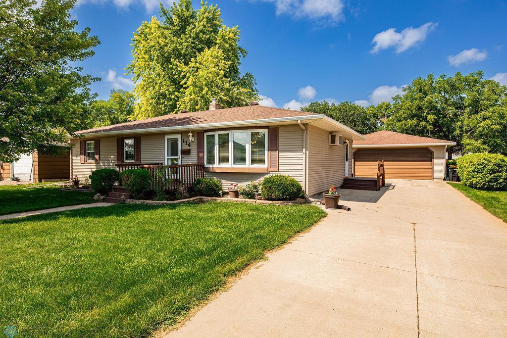 Now offering a $5,000 flooring allowance! Endless potential awaits in this spacious 2,400+ sq ft rambler in a prime location near schools, shops & a community pool. A large front living room with a bright window brings in natural light, while the eat-in kitchen & dining area overlook the backyard. The main floor also features 3 bedrooms with built-in storage & coat closets at both the front & side entries, offering even more storage. The basement includes a large 4th bedroom, a wet bar & plenty of space to finish the downstairs however you choose. The basement has been professionally braced & comes with a lifetime warranty, giving peace of mind & taking care of a major expense. Outside, you’ll find a sizable deck great for grilling or relaxing. Also note the home's durable steel siding, oversized 2-stall garage with large workshop space & the alley access for extra parking (boat, trailer, etc.). Solid bones, great location & room to grow—this home is the perfect opportunity to add sweat equity & truly make it your own!