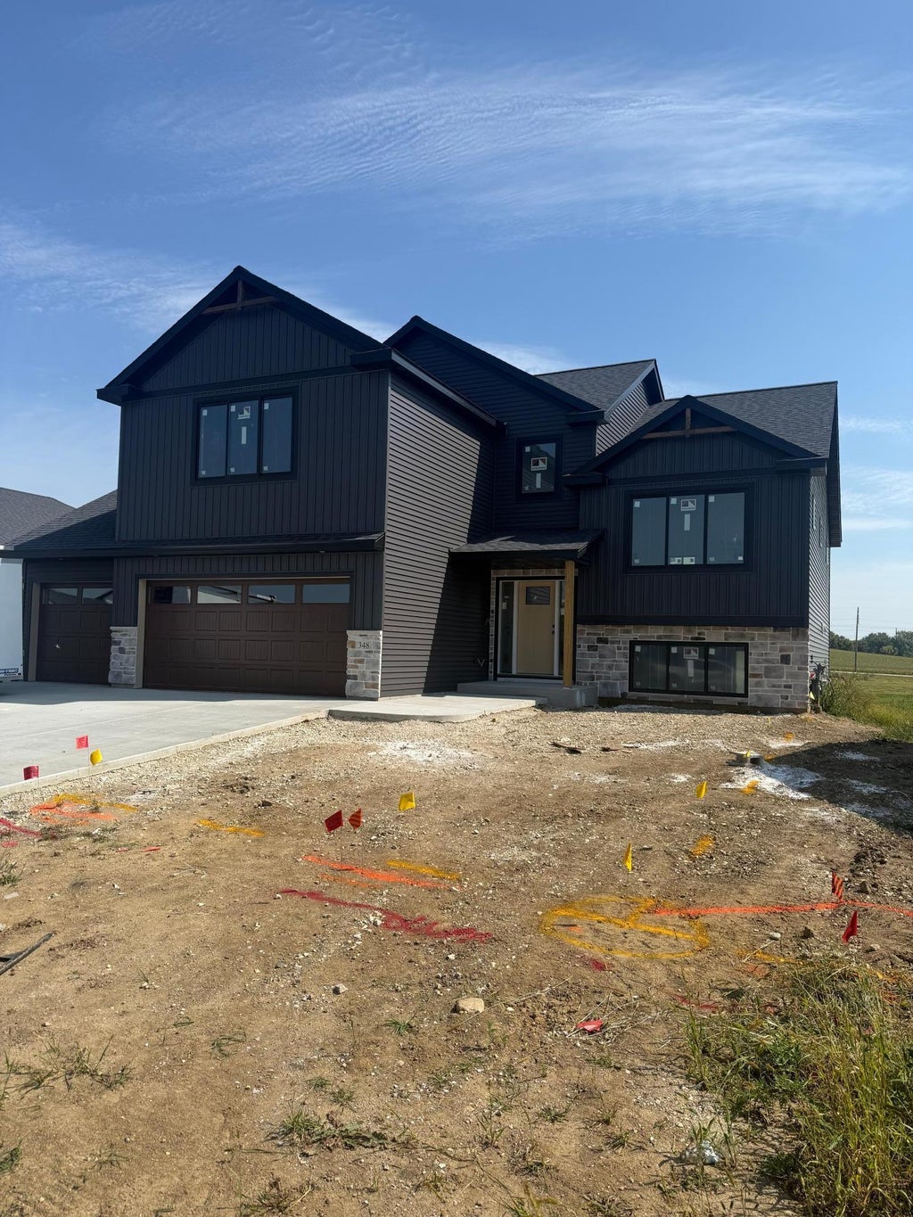 Stunning new construction in Zumbrota offering the perfect blend of style, comfort, and functionality. This modified 2-story home features a private master suite on the upper level, creating your own retreat away from the rest of the home. Enjoy a spacious 3-car garage, a luxurious tile walk-in shower in the master bath, and two bedrooms conveniently located on the main level—ideal for family, guests, or a home office. The bright, open-concept layout is enhanced with modern finishes throughout, perfect for both relaxing and entertaining. Located in Zumbrota, this home combines small-town charm with easy access to Rochester, Red Wing, and the Twin Cities.