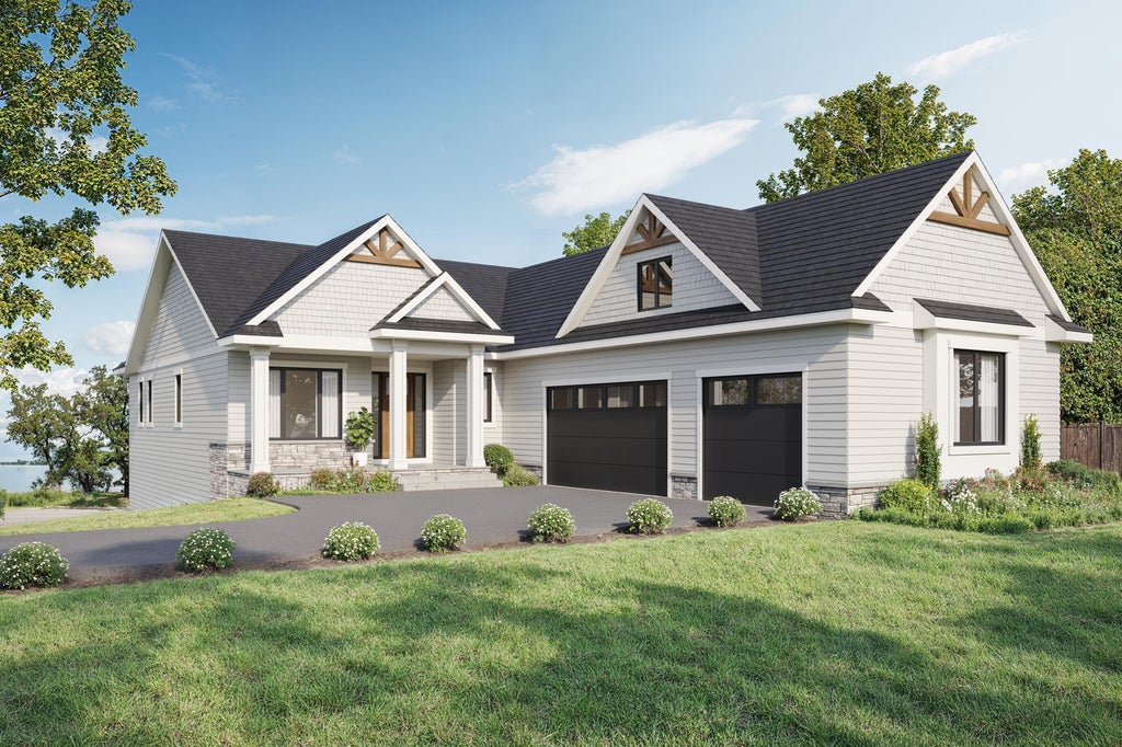 NEW BUILD OPPORTUNITY - CUSTOM LAKE HOME ON BALD EAGLE LAKE Joshua Markum Builders presents a rare opportunity to build your custom lake home on over 88 feet of shoreline on Bald Eagle Lake. One of the area's most desirable lakes known for its clear waters and recreational activities. Just 3 minutes from Downtown White Bear Lake and 20 minutes from St. Paul. INTERIOR DESIGN & FEATURES This rambler design maximizes lake views while blending modern sophistication with lakeside comfort. Floor-to-ceiling white custom cabinetry creates seamless flow throughout the open concept living spaces. The kitchen features dramatic backsplashes and countertops with natural veining, complemented by wood accents and brass pendant lighting over the large island. The great room captures lake views through floor-to-ceiling black-framed windows. Soaring ceilings with exposed wood beams and a modern chandelier anchor the space. Kitchen, dining, and living areas flow together, all oriented toward the water views. The rear elevation shows the two-story lakeside design with a covered upper deck for entertaining and lake views. Natural stone and white siding create timeless appeal that complements the lakefront setting. ADDITIONAL PLANS AVAILABLE - Starting at $1.3M, available for review before design is finalized. Construction to begin late fall 2025. Schedule your consultation today to review design options, discuss timeline, explore financing, as we are in process of closing on the homesite and start planning your lake home on one of the area's most desirable lakes.