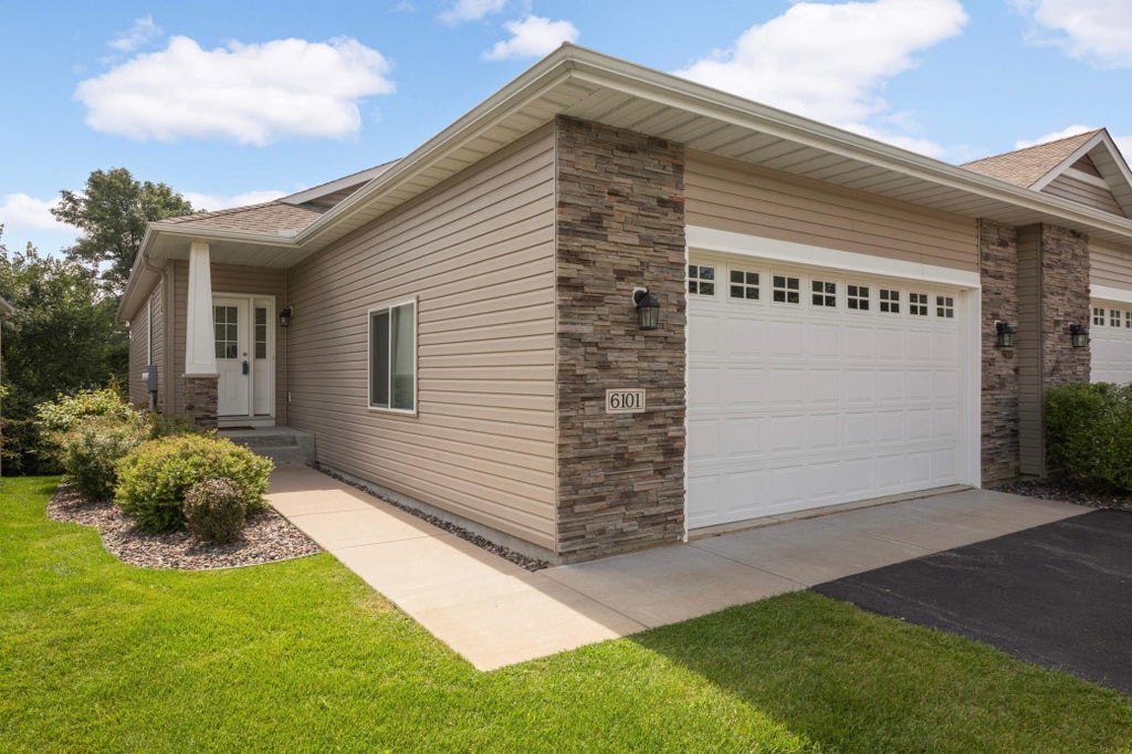 Welcome to this beautiful, meticulously maintained 2018 built main level living end unit townhome featuring 2 bedrooms (with the 3rd BR framed in the lower level), 3 bathrooms (including a private 3/4 primary), and an unfinished walkout lower level for future equity. Step onto the deck off the great room or the concrete patio out the walkout lower level and enjoy a private, lush green space. You will love the views from this unit as it is one of the best lots in the development, and both spaces are covered! This is maintenance free living at it's finest and the main level living you are looking for with a laundry room on the main level. Weather you are downsizing (the unfinished basement is perfect for storage) or looking for a seasonal place, this is the place to live. Close to the Twin Cities without the high price tag AND LOW association dues. This is a great place to call your next home.