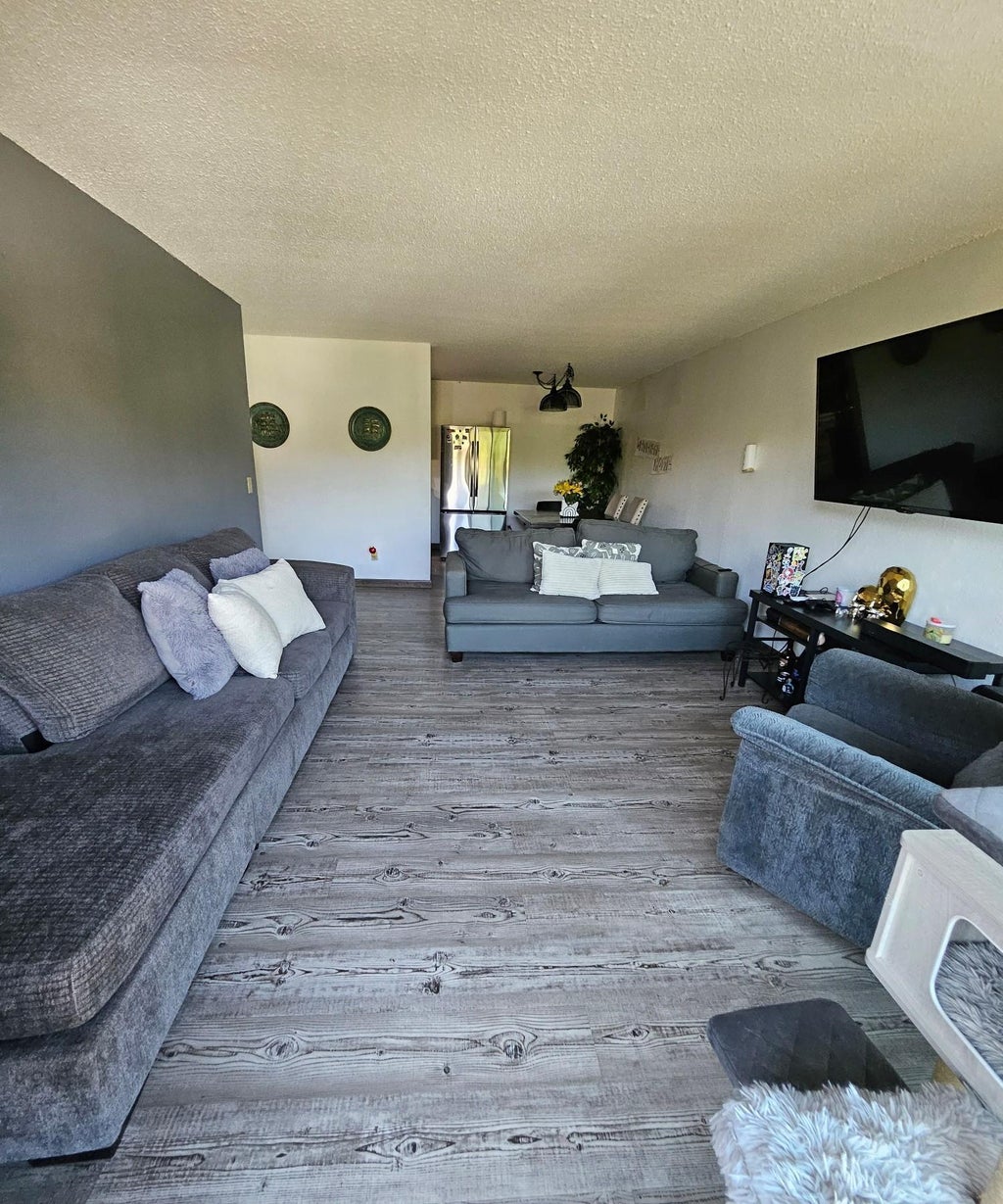 Welcome to this wonderful condo in Apple Valley! This property has 3 spacious bedrooms and 2 bathrooms with great updates! The updated unit boasts new kitchen cabinets, flooring, carpet, trim, and has been professionally painted in 2023, and new refrigerator in 2025. There is an abundance of storage and natural light throughout. In the summer you and your guests will be able to enjoy the private deck, heated pool, and picnic area. This unit has the closest garage possible, with a new opener and no noisy neighbors above you. Don't miss this one!
