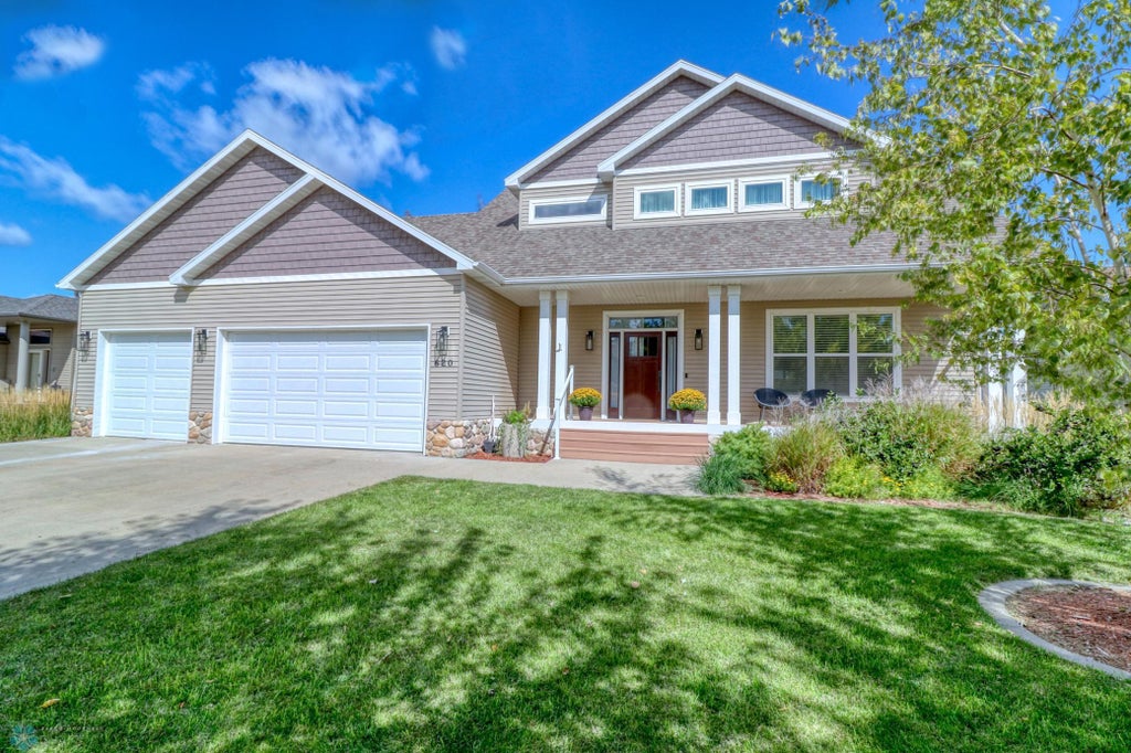 Welcome to this beautifully maintained home! The main floor offers an open-concept layout with inviting living spaces, abundant natural light, and elegant features such as built-in cabinetry, a striking stacked-stone gas fireplace, and extra storage throughout. You'll also find a spacious mudroom, functional main floor butler pantry, and additional built-ins for maximum functionality. Upstairs, enjoy generously sized bedrooms, including a luxurious primary suite with a spacious ensuite bath, and two additional bedrooms connected by a Jack-and-Jill bathroom. The lower level is just as impressive, featuring a cozy family room with another stacked-stone fireplace, a custom wine/chilling room, two additional bedrooms, a full bath, and a large utility room. Relax and unwind on the charming front porch, perfect for warm summer evenings. This is a home you won’t want to miss! Call your favorite Realtor today!