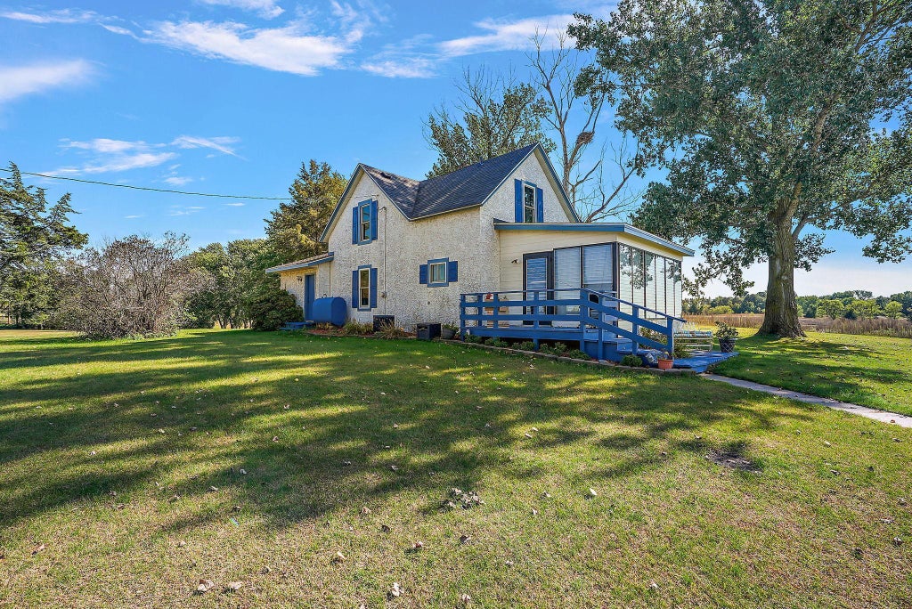 Classic updated Farmhouse in a peaceful setting located on almost 5 acres with plenty of mature trees. 2 36x72 pole buildings, large 4 stall carport/garage, and 4th garage for a total of over 7,000 sq. ft. of building space. Enjoy watching the sunsets from the east facing sunroom addition.