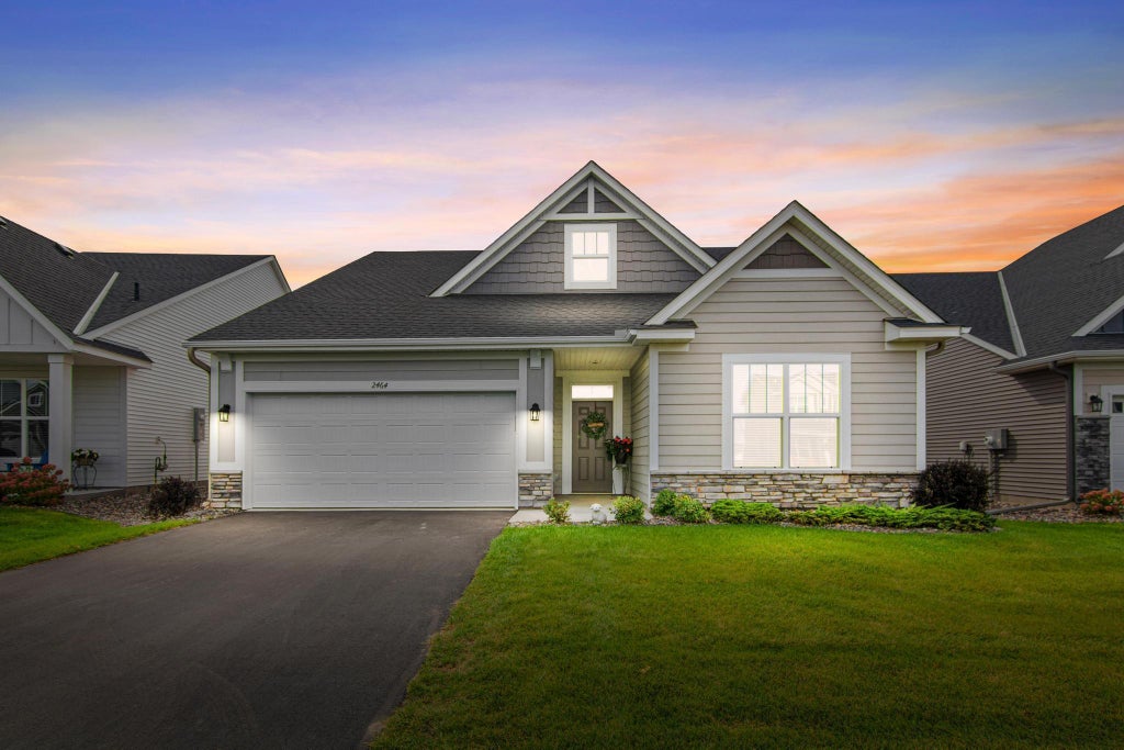Stunning slab-on-grade villa in Legacy Bay Farms! With 2,176 square feet this open-concept floor plan features vaulted ceilings, LVP flooring, and an abundance of natural light. The kitchen offers white cabinetry, a large center island with upgraded finishes, stainless steel appliances and a corner pantry. The spacious dining area flows into the sunroom leading to the backyard patio for outdoor entertaining. Retreat to the relaxing owner's suite showcasing a large bedroom, custom walk-in closet, linen closet. tub and shower, and double sinks. Additional highlights include a bonus flex room and a two-car garage with attic storage space. Built in 2022 this like new home is surrounded by walking paths and views of Uhl Lake and a pond. Enjoy the convenience of HOA maintained lawn care, snow care and sanitation service. Top-rated schools. Agent is related to the seller.