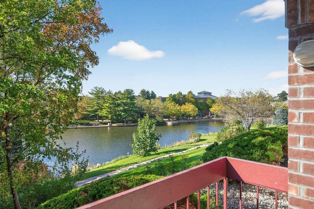 Live LAKEFRONT at Centennial Lakes! Imagine your day to day life, emersed in all that this area has to offer! This home is on the ground level at its entrance, yet sits above the park and lake. Approaching the front entrance, you will appreciate the lovely, manicured courtyard full of hydrangeas and other blooming plants. This condo is situated in a section of the building that has only 4 condo entrances - this adds a homey, less condo-like feel to this home. Upon entering this home, you will step into a foyer with a generous coat closet and room for a bench. In-unit laundry is in the foyer area, also. This home features a split floor plan, with the primary bedroom on the courtyard side of the building, away from the park activities. The primary bedroom is spacious and allows for multiple dressers & tables and boasts an incredible amount of closet space along the approach to the walk-thru full bath. The split floor plan also means there are windows on both the front and back side of this condo, for great cross ventilation and sunlight. The kitchen features a breakfast bar, beautiful granite countertops, ceramic tile backsplash & floor and a newer refrigerator. The living and dining areas are completely open with fresh paint, newer carpeting and a large window overlooking the lake. One may access the deck from both the living room and the 2nd bedroom/office. There is much to enjoy without leaving home: Time on the deck watching paddle boats & putting green activities and listening to a concert during warmer weather, or cozy up in front of the fireplace and watch ice skaters in the winter. Venture out to enjoy the lakeside path and activities offered at the park. Just outside this home, there is a pedestrian bridge across the lake leading to coffee, shops (including Whole Foods), and restaurants. Near medical buildings, as well. Quick highway access and just minutes to the airport, Minneapolis lakes and downtown. Updates include a new air handling unit (2023), new refrigerator (2023), freshly painted living/dining areas, 2nd bedroom & foyer plus newer carpeting installed by the prior owner. No elevator in this building. Some photos include virtual staging.
