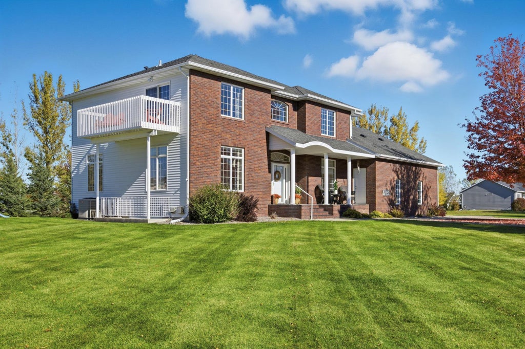 Rare opportunity to own over an acre lot with mature trees right in town, PLUS a 4-stall garage! If the location and lot don’t draw you in, the home certainly will. This beautiful 2 story home offers space and thoughtful details across all three finished levels. The main floor features an open layout, hard-surface flooring, surround sound, and great natural light. The kitchen serves as the heart of the home, complete with a large granite island, pantry and pantry cabinet, stainless steel appliances, desk station, and under-cabinet lighting. An office (or main floor bedroom), half bath, and a large laundry room equipped with cabinets, counters, hang bar, and washer/dryer, complete this level. Upstairs, you’ll find 4 additional bedrooms (or 3 plus a bonus room), including a spacious primary suite with a private balcony, cozy loft nook, and spa-like bathroom featuring dual sinks, a soaking tub, tiled shower with glass door, and heated floors to keep your toes warm. In the lower level, relax or entertain in the family room with a fireplace and bar area. This versatile space offers endless possibilities! You’ll also find an additional bedroom with walk-in closet, bathroom, and plenty of storage. Great garage space in this heated attached 3-stall garage, plus a 20x24 detached 1 stall garage that’s finished with electrical for the extra-large toys or hobbies. Enjoy sunsets from your patio overlooking the trees and 1.16 acre lot; space to add that pool or court you’ve always wanted! The sprinkler system has already been winterized, and the playset is included. Low specials under $4,700 to keep that payment down. Come see all this incredible home has to offer, it’s ready for its next owners!