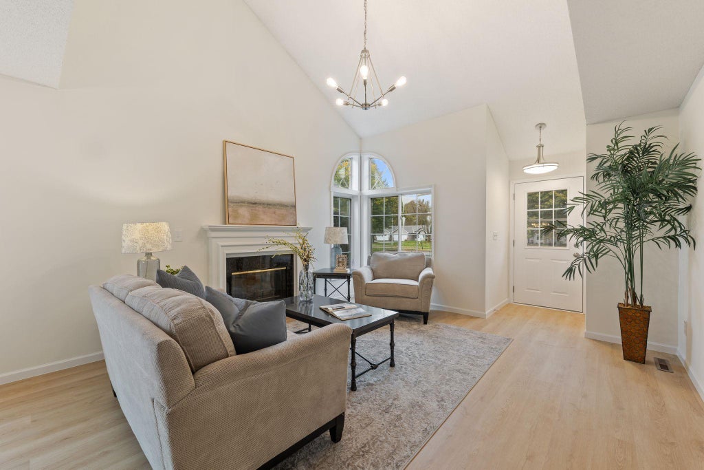 Beautifully updated 3-bedroom, 2-bathroom townhome with a 2-car garage! Enjoy fresh paint, new carpet, and LVP flooring throughout. The main level boasts a tall, open living room with a cozy fireplace, a dining area with a sliding door leading to the patio, and a stunning kitchen featuring brand-new cabinets, countertops, backsplash, and stainless steel appliances, plus a convenient half bath. Upstairs, you’ll find three comfortable bedrooms and a full bathroom. The unfinished basement offers ample potential for future expansion, perfect for adding extra living space or storage. Move-in ready and full of modern charm!