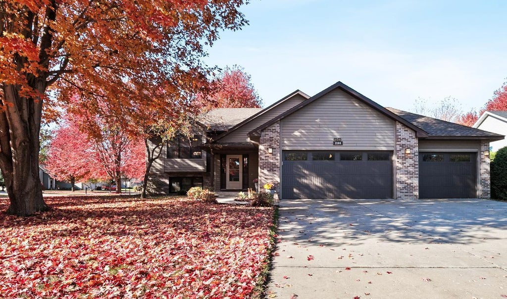 Splendid 3 Bedroom, 3 Bath, 3 Car Garage, Split entry home in a nice neighborhood and within walking distance to schools and parks! Notice the larger .29 acre lot, cement driveway, home brick accents and larger entry upon arrival at the home. Short distance to both Aspen and Spring Creek Parks. Kitchen with stainless steel appliances, custom cabinetry, good counter space. Note the pull-out shelves with the kitchen cabinetry. Includes hardwood floor in dining area, oak railing, raised 6 panel doors, box-bay window, tile floor in bathrooms, lawn sprinkler system and nice deck w/stairs. Larger open spaced Family Room with a raised hearth gas fireplace w/ an oak mantel & surround, good sized bedrooms, primary bedroom with a 3/4 bath and walk-in closet, walk-in closet in basement bedroom as well. Also, with 3 year old roof shingles. See while this home is available.