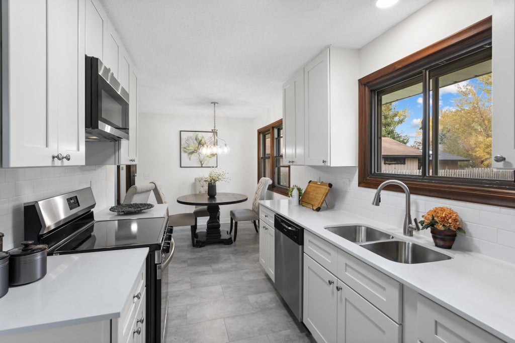Completely remodeled rambler in award-winning District 196. Brand-new kitchen with quartz counters, new cabinets, and stainless appliances. Updated vinyl windows. Fresh, modern finishes throughout. Convenient Rosemount location close to schools, parks, and shopping.