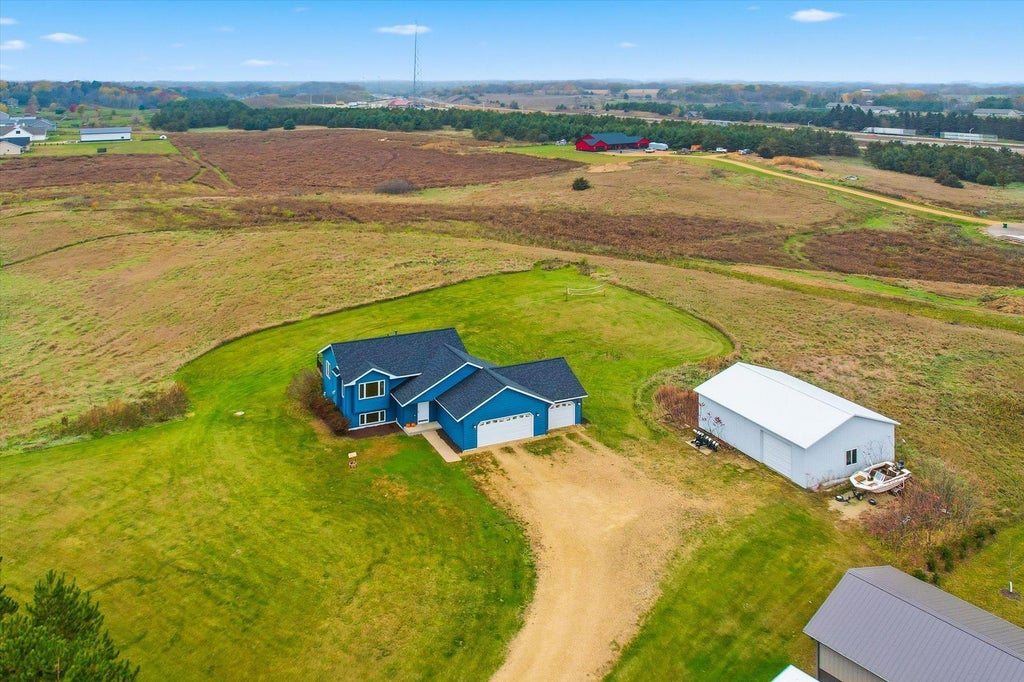 If you’re searching a warm and inviting home, with a couple acres of breathing room, close to Hudson, WI, with garage space to store your toys and tools - then this may be the perfect home for you! This well maintained home offers 4 beds (2 up, 2 down), 2 full baths, large, open kitchen with breakfast bar, space for a dining table, new quartz counters, new flooring, and stainless steel appliances… living room offers vaulted ceilings, the warmth of abundant natural light, and a gas fireplace for those chilly winter nights. The lower level has a nice sized family room with walkout, 2 beds, a full bath, laundry, mechanicals, and additional storage under the staircase. You’ll love the large, heated, 3 car attached garage - AND the 30 x 40 pole shed just waiting to house your hobbies, toys, and tools. Roof and siding new in 2023.