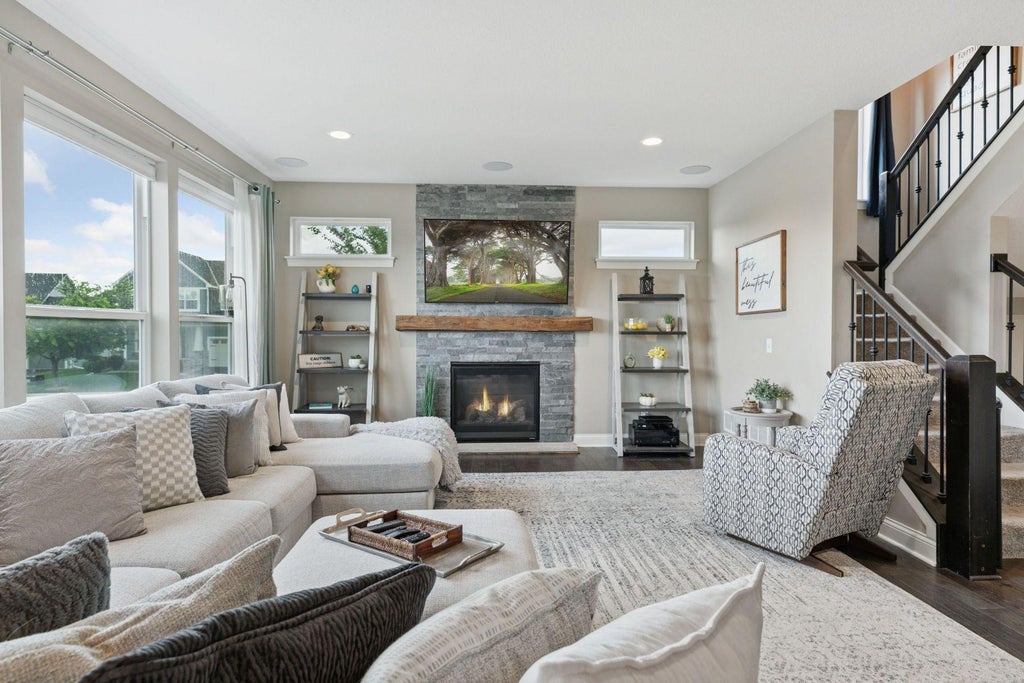 Completed in 2017 this home is very new-ish located in a newer development. Sellers are the only owners thus far. Gorgeous open concept with a well appointed kitchen, stainless appliances, gas range, double door fridge, rich dark cabinetry and beautiful stone countertops spilling out into a comfortable all inclusive dining area straight into a large living room with a gas fireplace. Gorgeous dark hardwood throughout the main level. Straight off the dining area is a large deck with plenty of room for all and excellent viewing of the very large, flat, grassy completely fenced in yard with six-foot maintenance free fencing. Four bedrooms upstairs including the primary suite and laundry as well as a sitting/study nook. The basement is a look out with a large family room, bedroom and 3/4 bathroom as well as a small work room.