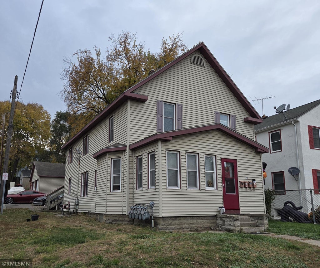 Easy to own and maintain 4-plex, each apartment has: 1 bedroom, 1 bath, kitchen, living room, windows on 3 sides, private entrance. #1 has the front porch + bsmt. 2 stall garage and parking for 4 cars. No laundry. Current owner has owned for 24+ years, and has replaced: roof, siding, windows, stair treads, parking lots, retaining wall, water heater, high efficiency furnace, and as needed: appliances, electrical, plumbing, and flooring: hardwood, carpet, vinyl. Long term tenants. Tenants pay: gas for their range, electricity, and provide their own air conditioning. Owners pay: heat, water, sewer, garbage, lawn/snow care, electricity for basement. There is more potential income by renting basement for storage. Current income: (1) $900(2) $885(3) $885(4) $880, (E garage) $70, (W garage) $70. New owner must get a rental license from the City of South St Paul after closing. South St Paul does not have rent control and is located in Dakota County.